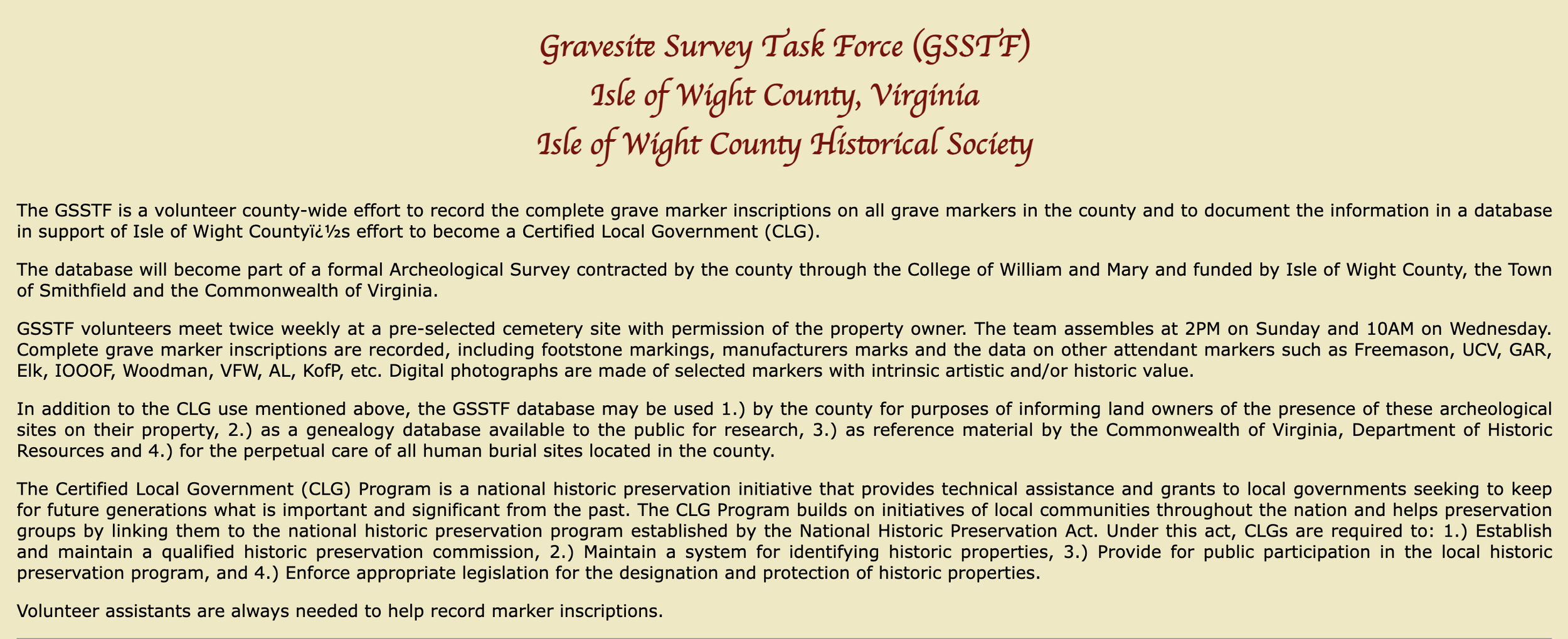 Recorded by Isle of Wight County Historical Society (IWCHS) Grave Site Survey Task Force (GSSTF). Updated August 17, 2025